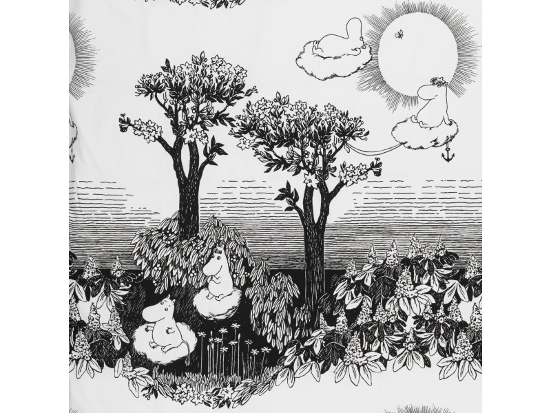 Mustvalge kujundus põhineb Tove Jansson klassikalisel muumilool Võlukübar, kus muumid leiavad võlukübara ja iga päev hakkavad toimuma enneolematud sündmused. Illustratsioonis on muumid visanud võlukübara prügikasti ning sellest kerkivad pilved, millel saab isegi ratsutada. Mänguline ja fantaasiarikas kujundus toob magamistuppa põhjamaist disaini ning muumioru võlu.