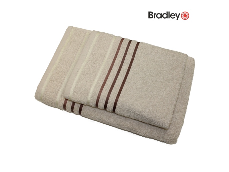 Bradley froteerätik, 70 x 140 cm, triibulise bordüüriga, beež