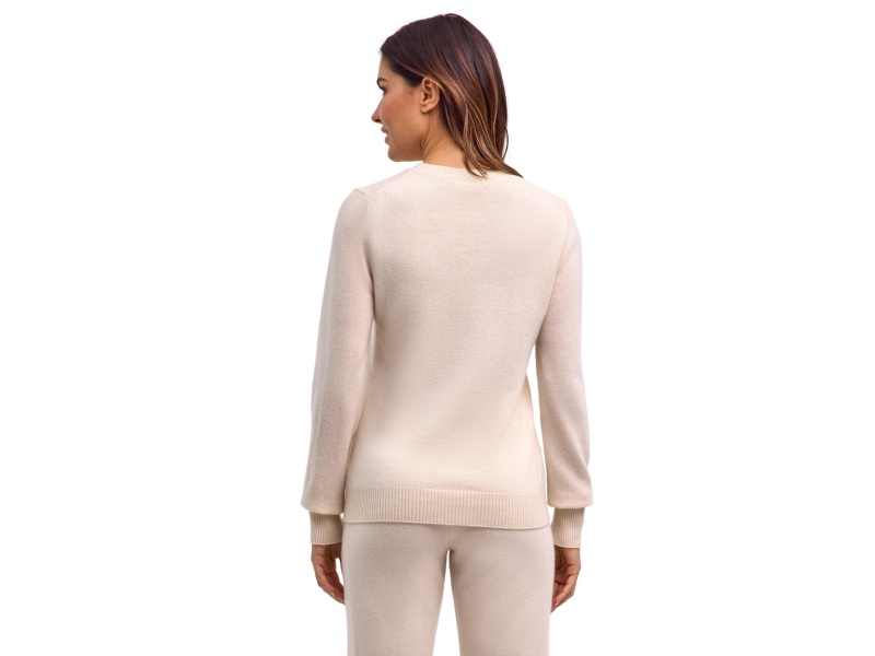 Naiselik ümara kaelusega kašmiirist kampsun sobib ideaalselt igal aastaajal tänu suurepärasele soojusisolatsioonile ja temperatuuri kompensatsioonile. Tänu siledale peenele kudumile tuleb pehme tunne eriti kaunil moel esile. Tänu korrapärasele istuvusele ja minimaalsele disainile on see kampsun ajatu klassika.