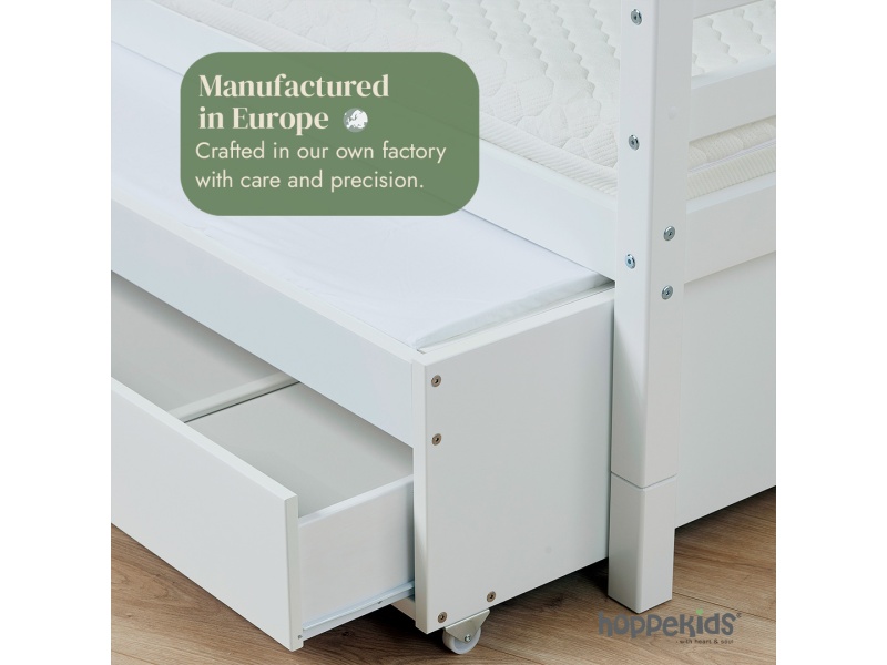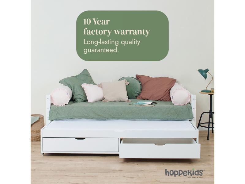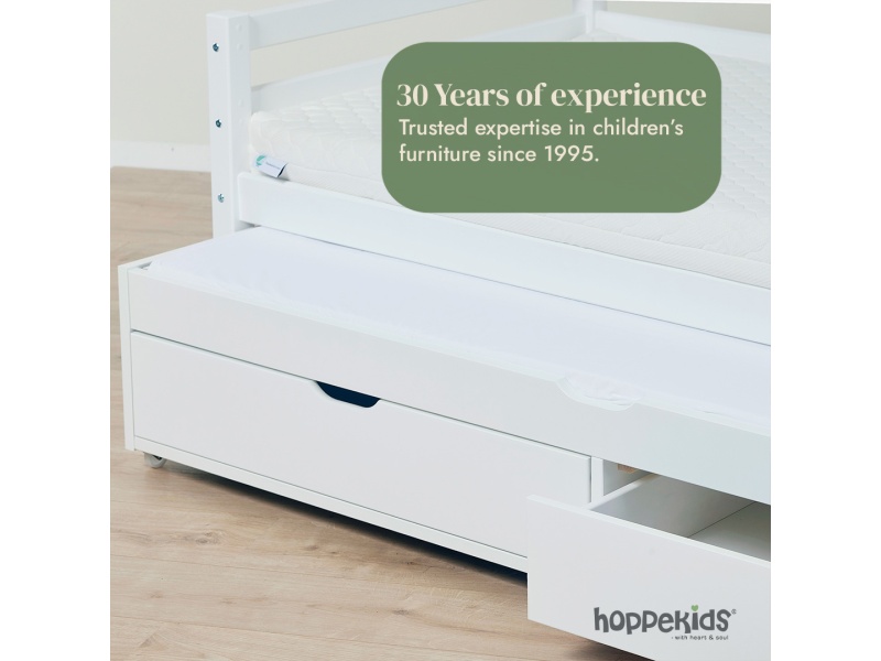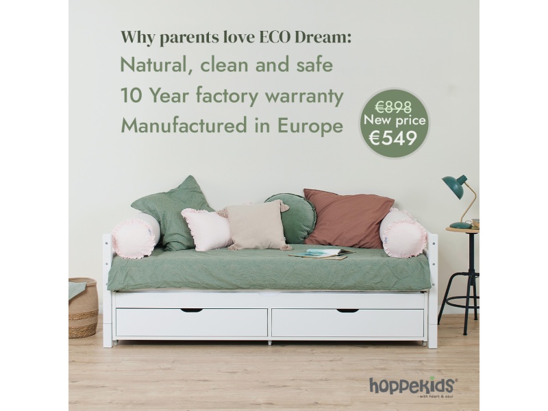 Koge mugavuse, funktsionaalsuse ja paindlikkuse täiuslikku kooslust Hoppekids Eco Dream üheinimesevoodiga, millel on lisavoodi. See voodi on loodud looma lapsele ideaalse magamiskeskkonna, pakkudes samal ajal lisaruumi külalistele ning praktilist panipaika voodipesu või mänguasjade jaoks.