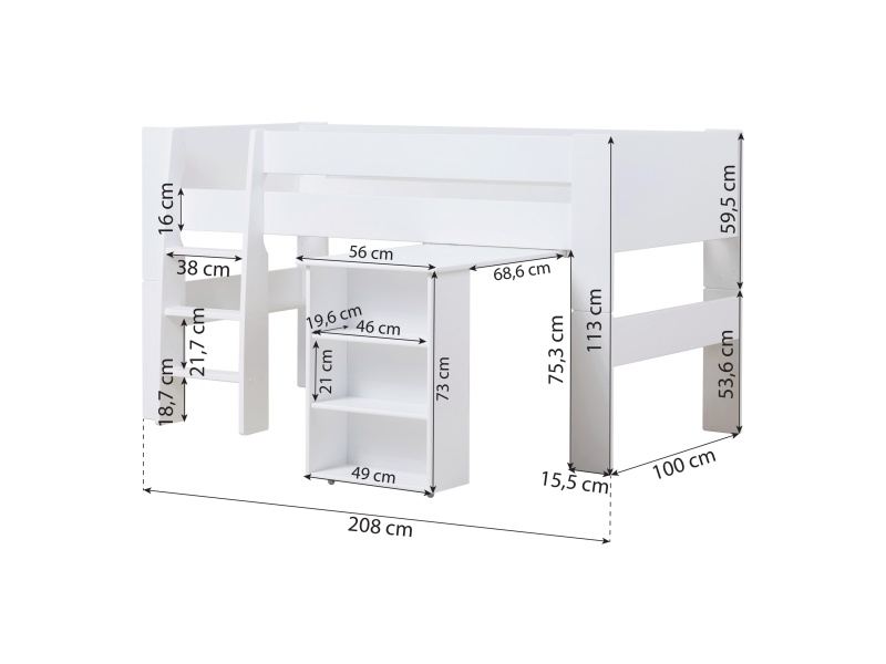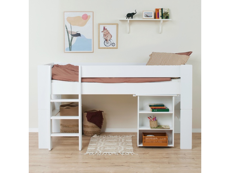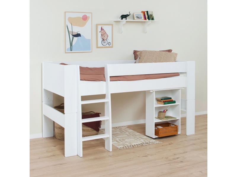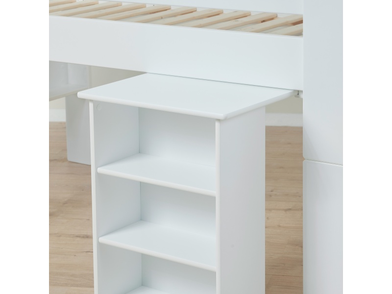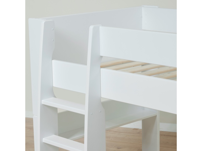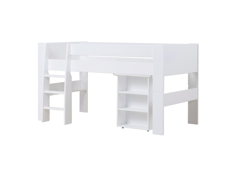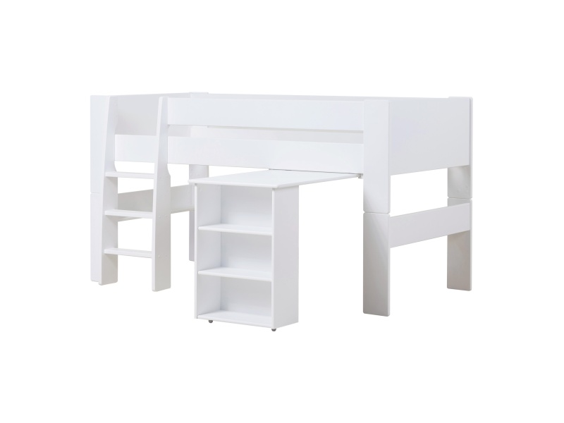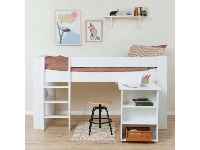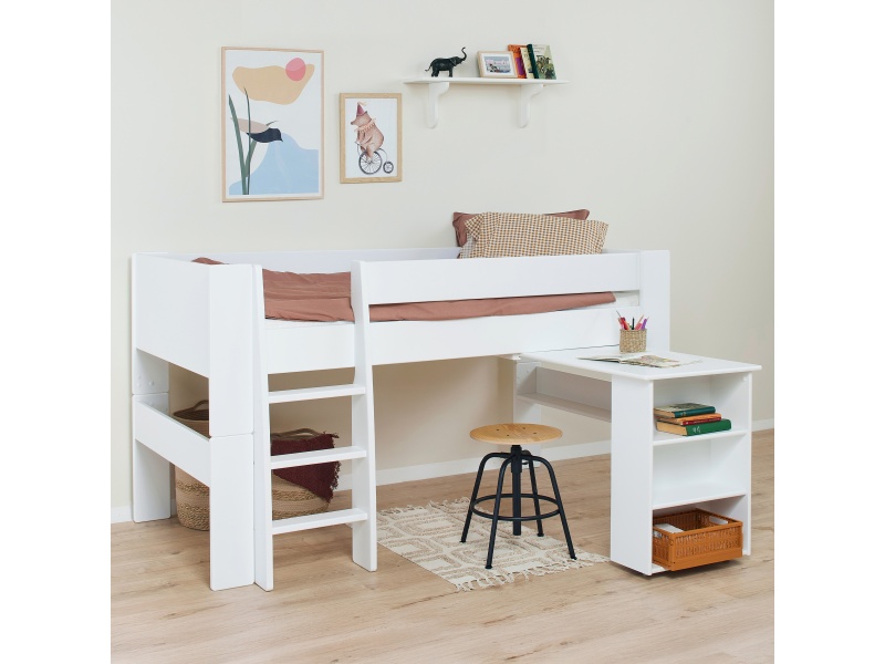Hoppekids Pure poolkõrge voodi lauaga 90x200cm valge