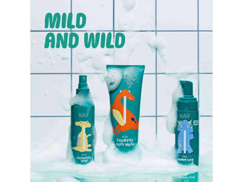 NAÏF lastele loodud šampoon + pesugeel puhastab ja hooldab juukseid ning keha. Õrn silmadele. Ei sisalda SLES-i ega mikroplaste. Värske ja puuviljane: õrna laimi ja mustsõstra lõhnaga. Suhkrupeedist saadud betaiin niisutab pesemise ajal nii nahka kui ka juukseid.