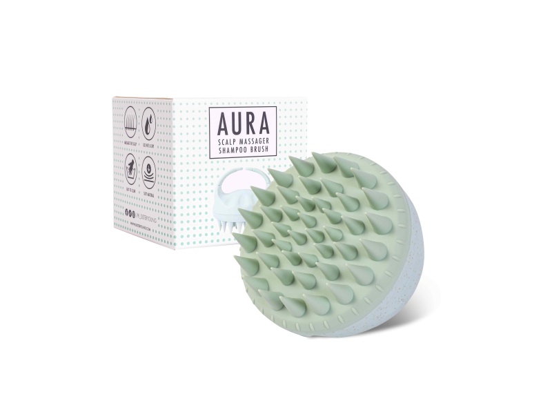 Avastage kaunite juuste saladus AURA Scalp Massager šampooniharjaga.