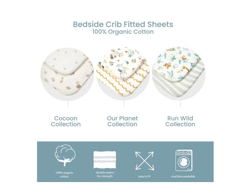 Valmistatud 100% sertifitseeritud mahepuuvillast, need luksuslikud ja täielikult CoZee hällile kohandatud linad püsivad terve öö paigal.