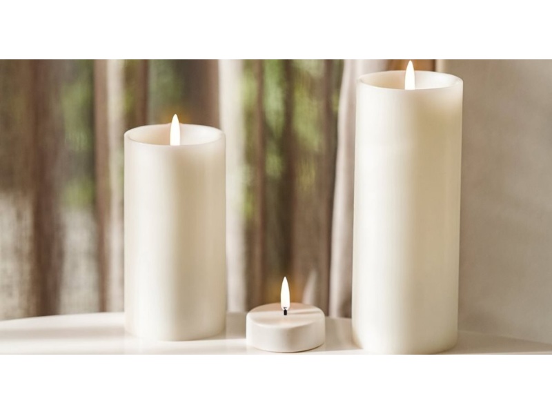 Need elegantsed silindriküünlad on realistliku “süvendiga” leegi ümber, et rõhutada ehtsat küünlatunnet. Rühmitades erineva suurusega õlaga silindriküünlaid, lood oma koju tõeliselt hubase ja meeleoluka õhkkonna.