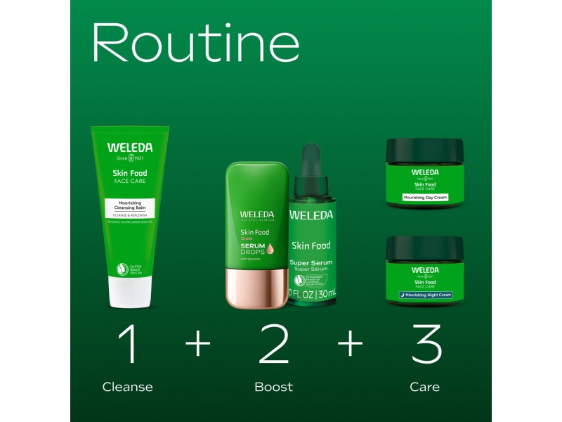 Anna nahale vajalike toitaineid selle võimsa hüaluroonhappe, keramiidide ja Weleda legendaarse Skin Food fütoinfusiooni seguga mis ühendab kummeli, saialille, rosmariini ja kannikese ekstrakte. See on ideaalne täiendus teie nahahooldusrutiinile, kui nahk on kuiv või tuhm, et võidelda naha pingulolekuga ja anda nahale sära – jättes naha pehmemaks, elastsemaks ja tervena säravaks.